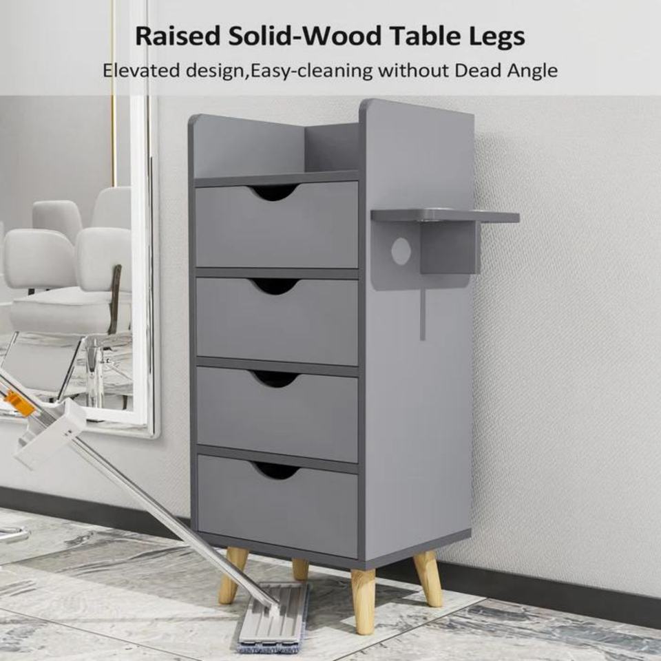 Estación de Almacenamiento para Estilismo de Salón Qumeng de 4 Niveles con 4 Cajones, 2 Soportes para Secador de Pelo y Patas de Mesa Elevadas