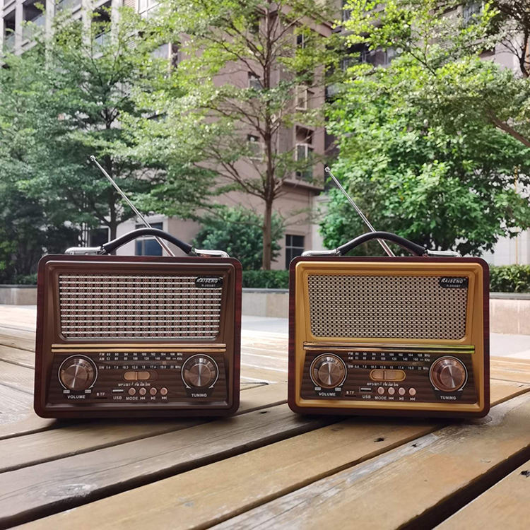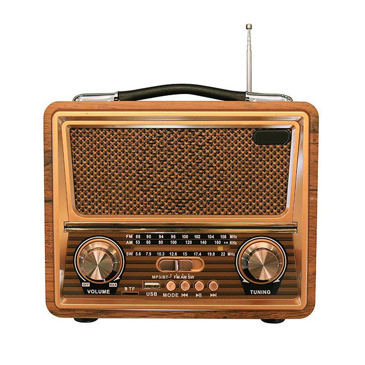Radio Portátil Retro Vintage R-2055BT Raiseng R-2055 de Madera con Antena, Altavoz Hi-Fi AM SW FM con Transformador
