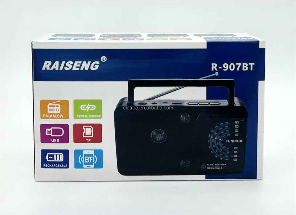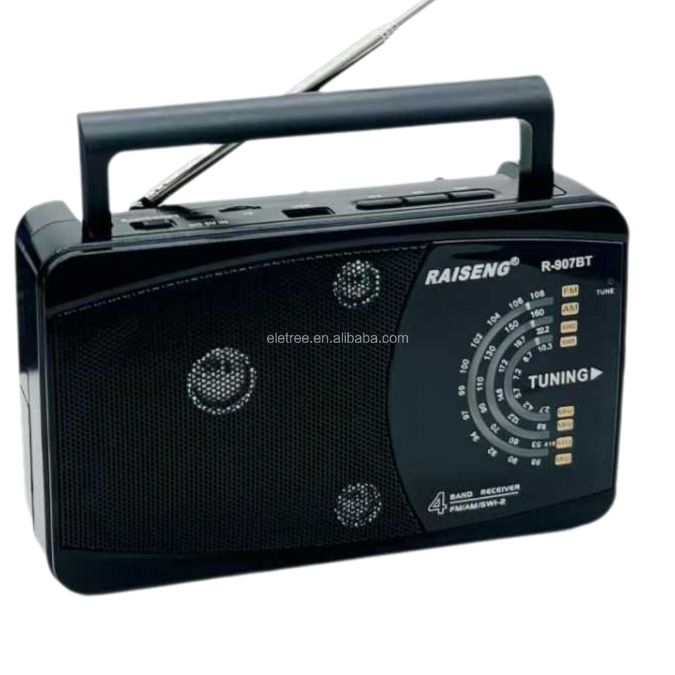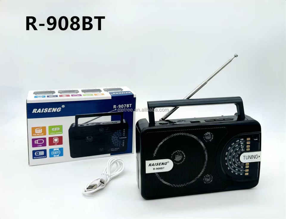 Radio Portátil Clásica R-907BT R-908BT R-909BT, Recargable por CC, 4 Bandas AM FM SW, con Conector para Auriculares