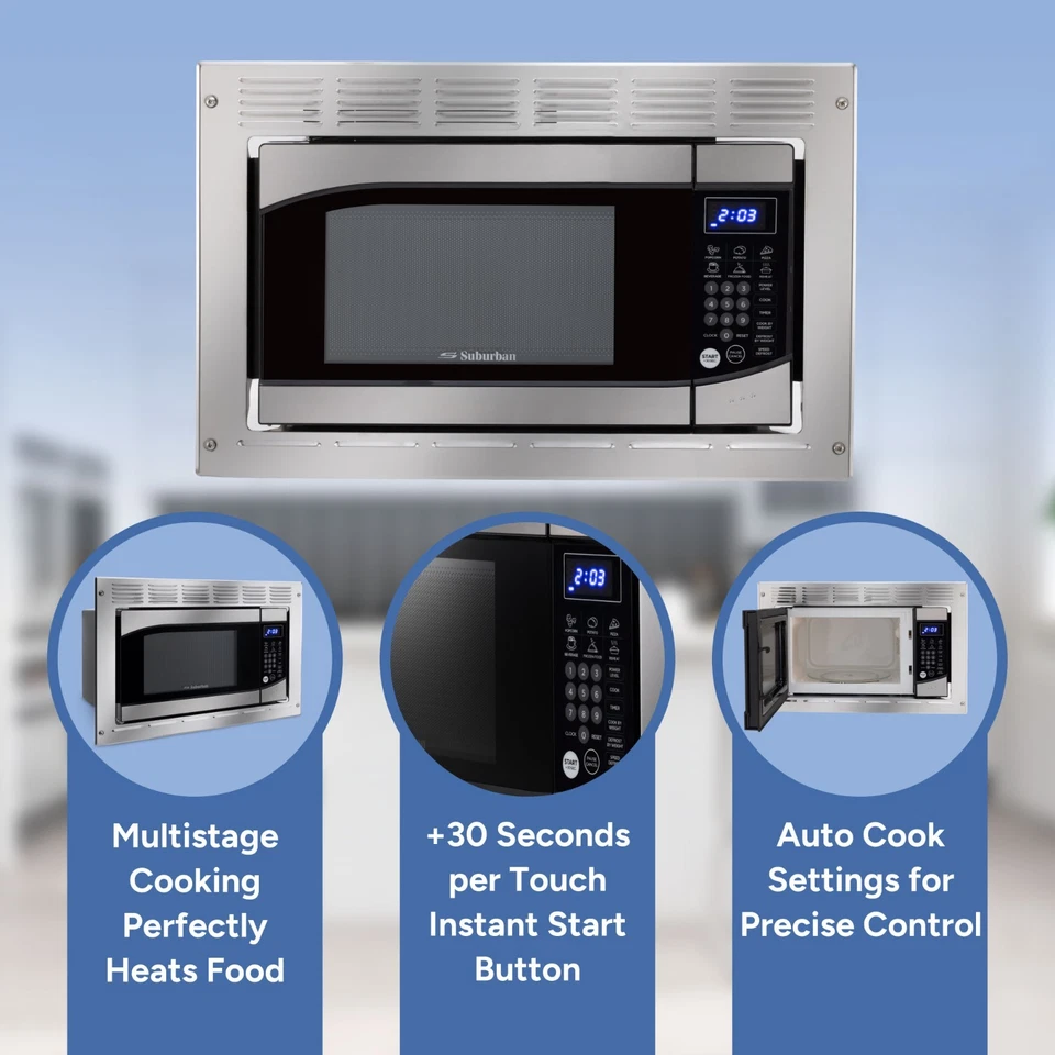 Recolector de microondas Recpro Suburban RV Built-in Microwave 0.9 cu ft Stainless Steel con kit de montaje 900W