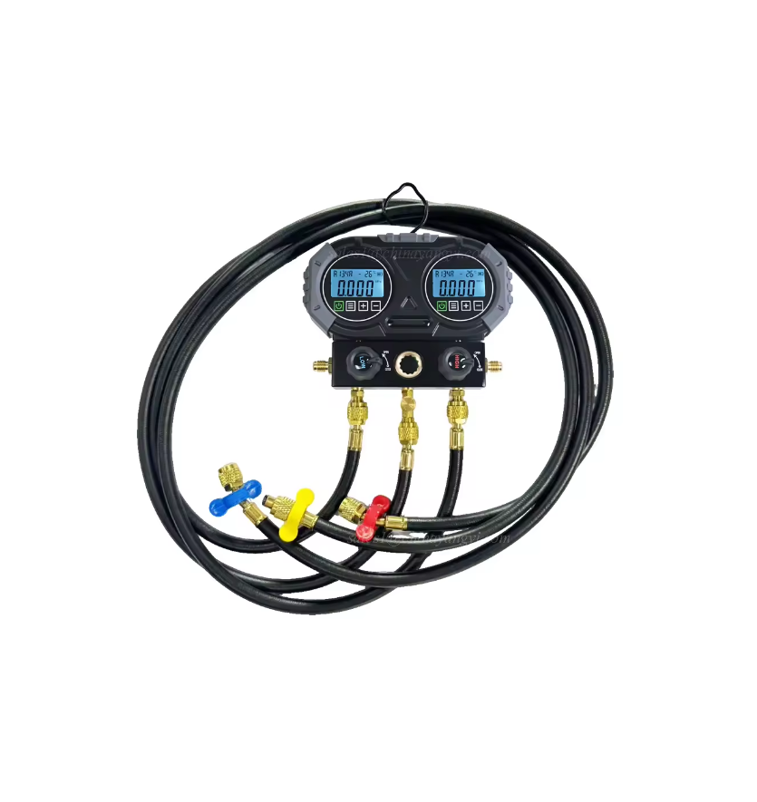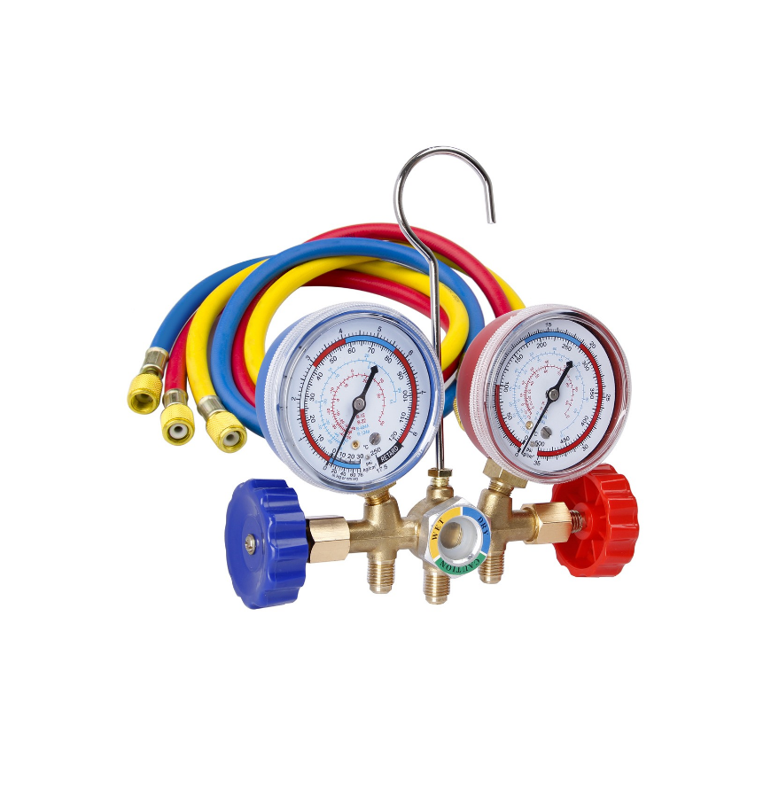 Manómetro para Aire Acondicionado R22 R410A R134a con Mangueras de 60 Pulgadas y Sistema de Válvulas de 4 Vías para Servicio Versátil de Aire Acondicionado