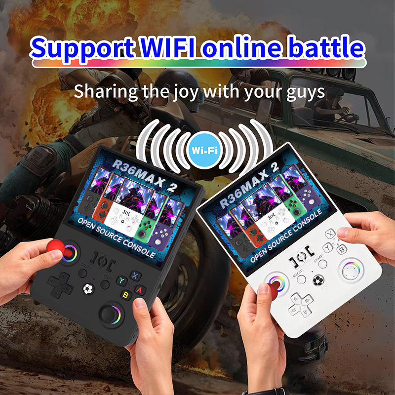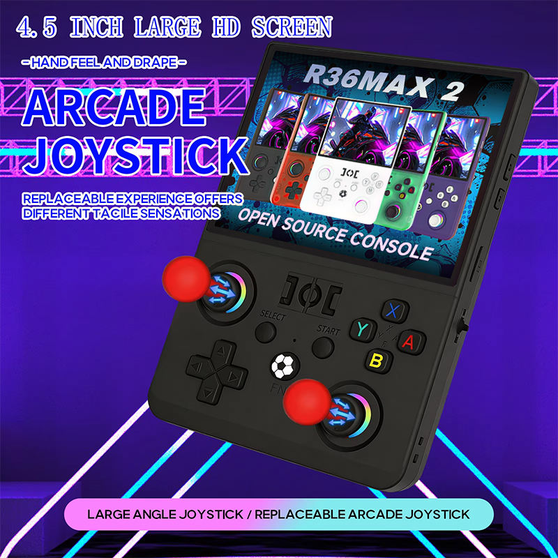 Consola de juegos portátil R36 MAX 2 con sistema Linux, pantalla IPS HD de 4.5 pulgadas, WIFI, reproductor de videojuegos retro, consola arcade con joystick, más de 18000 juegos.