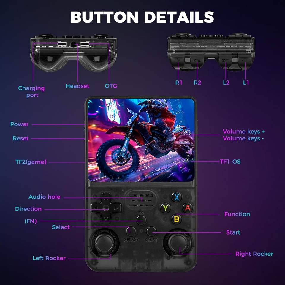 Consola de Juegos Portátil R36S, Pantalla IPS HD de 3.5 Pulgadas, Memoria de 64 GB, Batería de Ultra Larga Duración, Regalo para Adultos, Adolescentes y Niños (Negro)