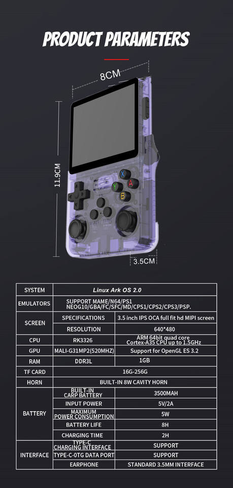 Consola de Videojuegos Portátil Retro R36S con Sistema Linux de Código Abierto, Capacidad de 64GB/128GB y más de 15000 Juegos