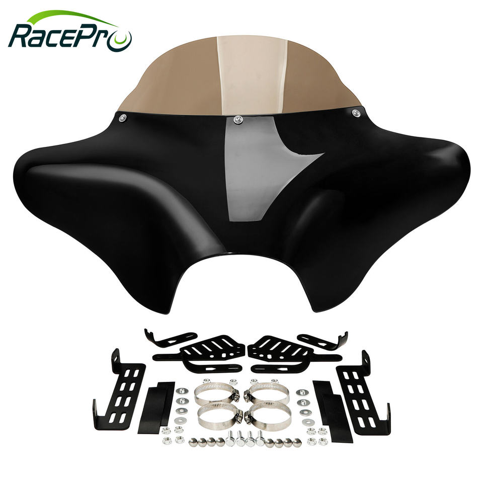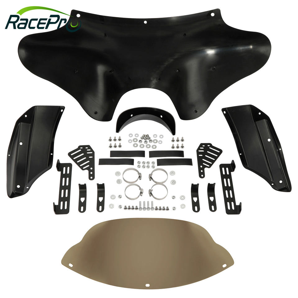 Parabrisas de carenado delantero de ala de murciélago para motocicleta RACEPRO apto para Harley Softail Deluxe Fatboy Heritage Classic Yamaha V Star 1100 650