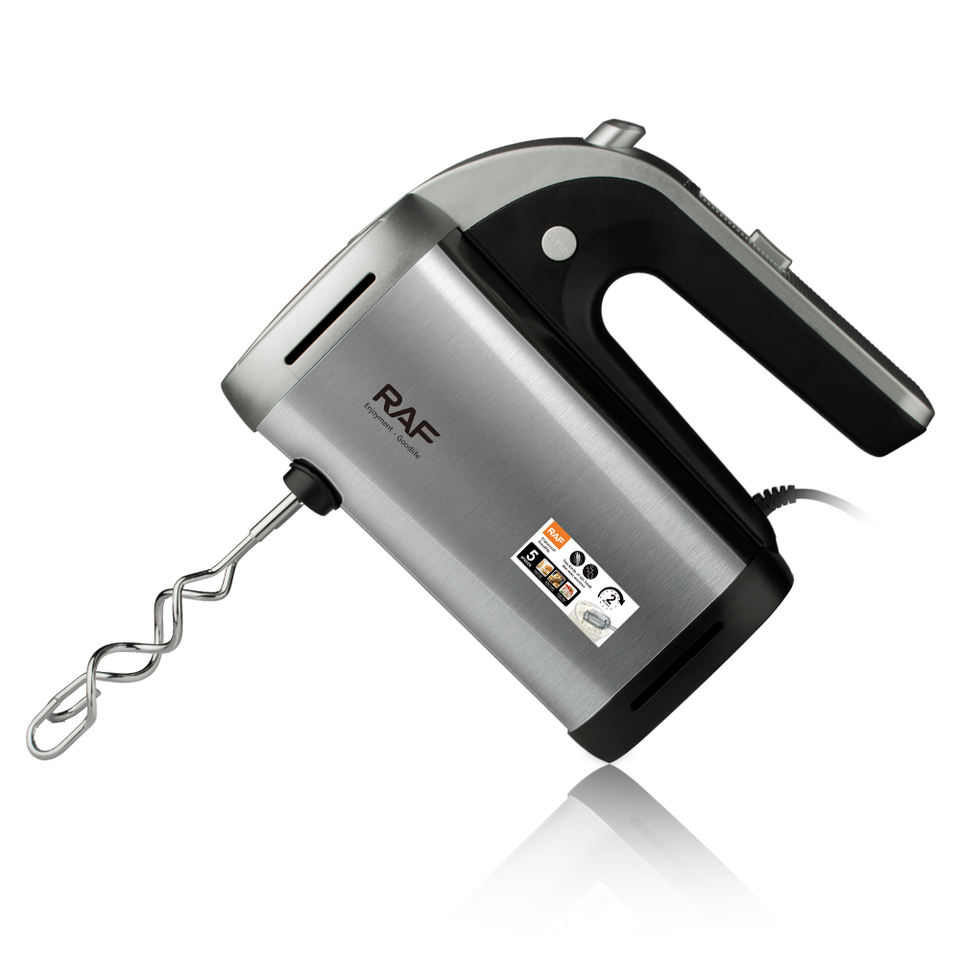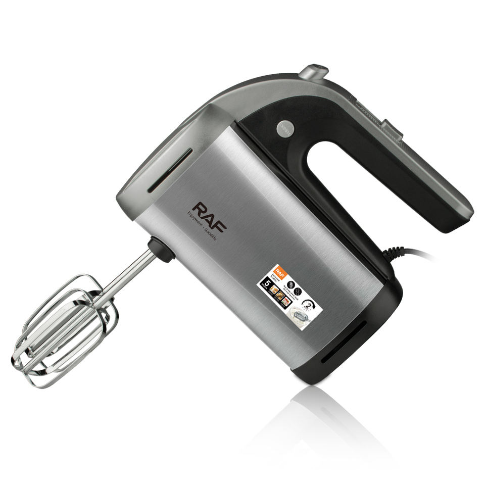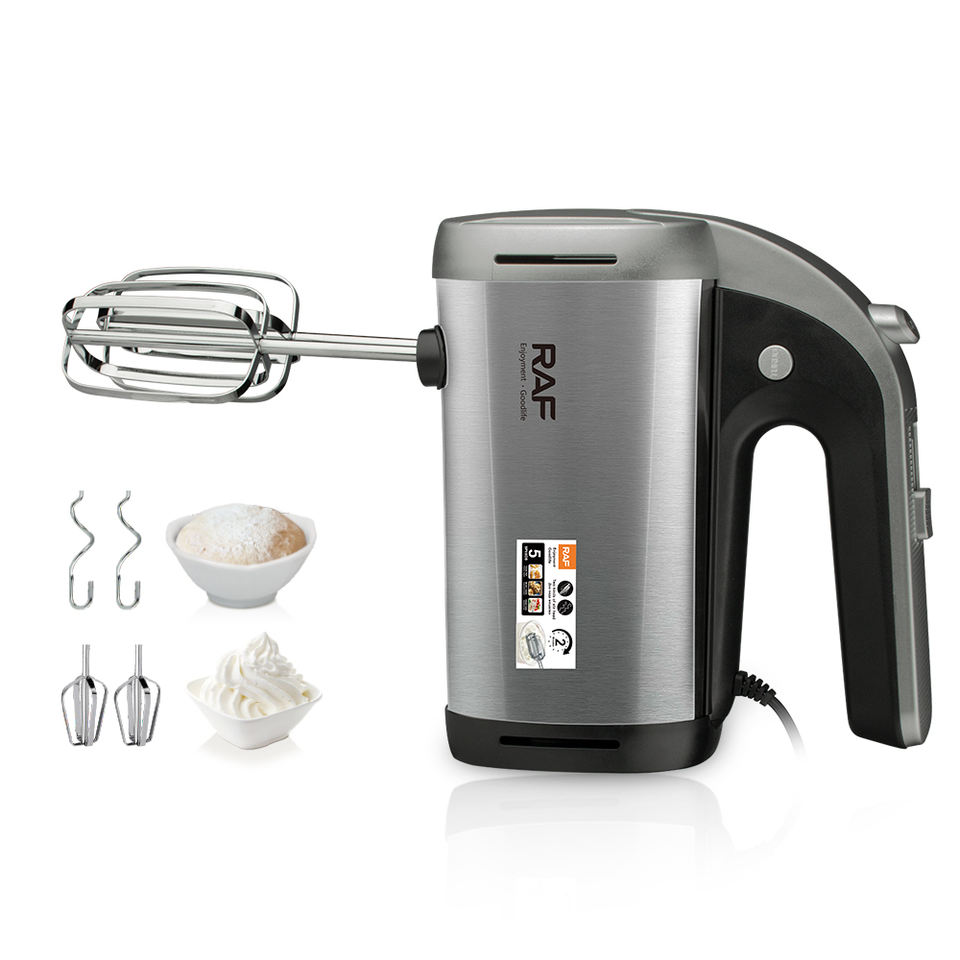 Mezclador de alimentos de mano eléctrico de mano de huevo de masa de 5 velocidades con varilla doble multifuncional RAF 650W con batidor y batidor de gancho
