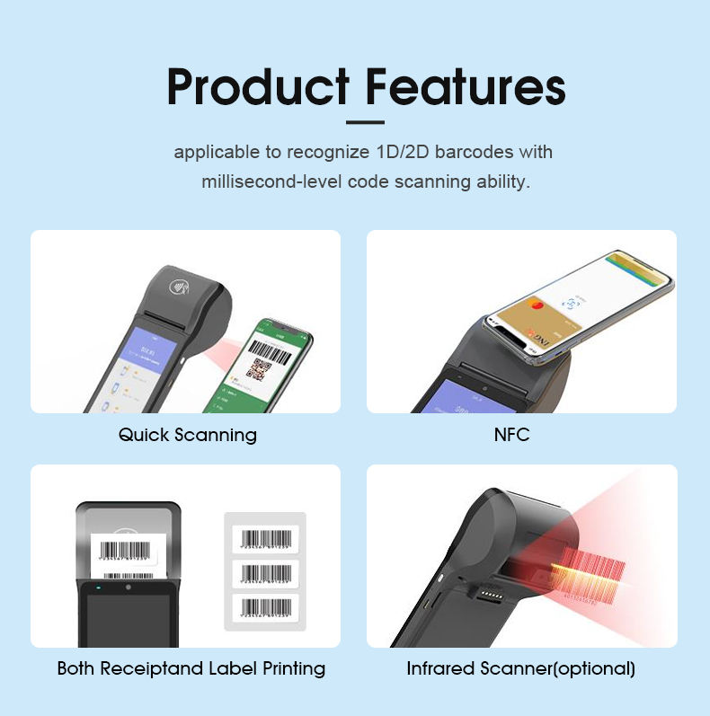 RAKINDA Android RK25 Terminal Punto de Venta Portátil Todo en Uno, Biométrico, Inteligente, con Facturación, 4G, NFC