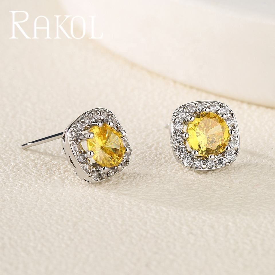 Nombre o palabras:RAKOL ep102 New Designer Sunflower Classic Zirconia Stud Earrings