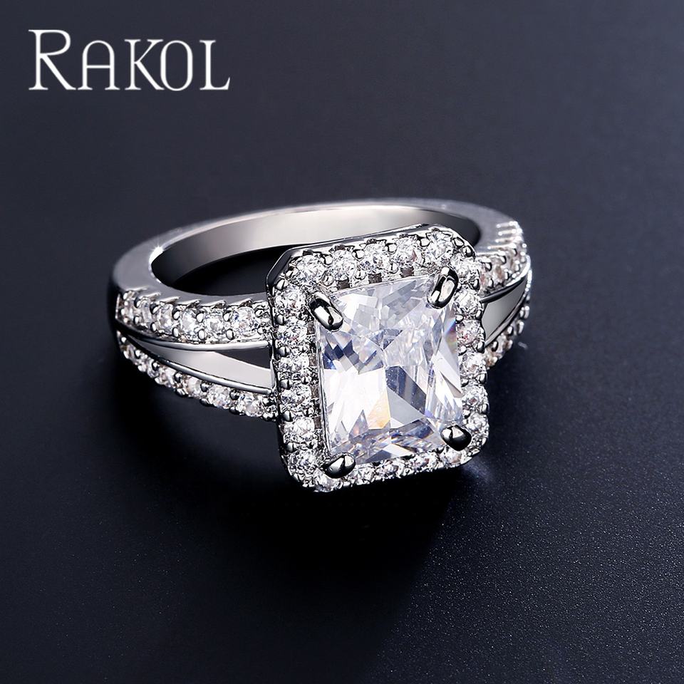 RAKOL RP5041 Anillo DE BODA femenino con incrustaciones de plata exquisita de compromiso