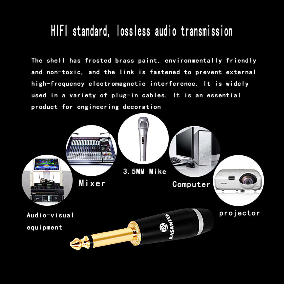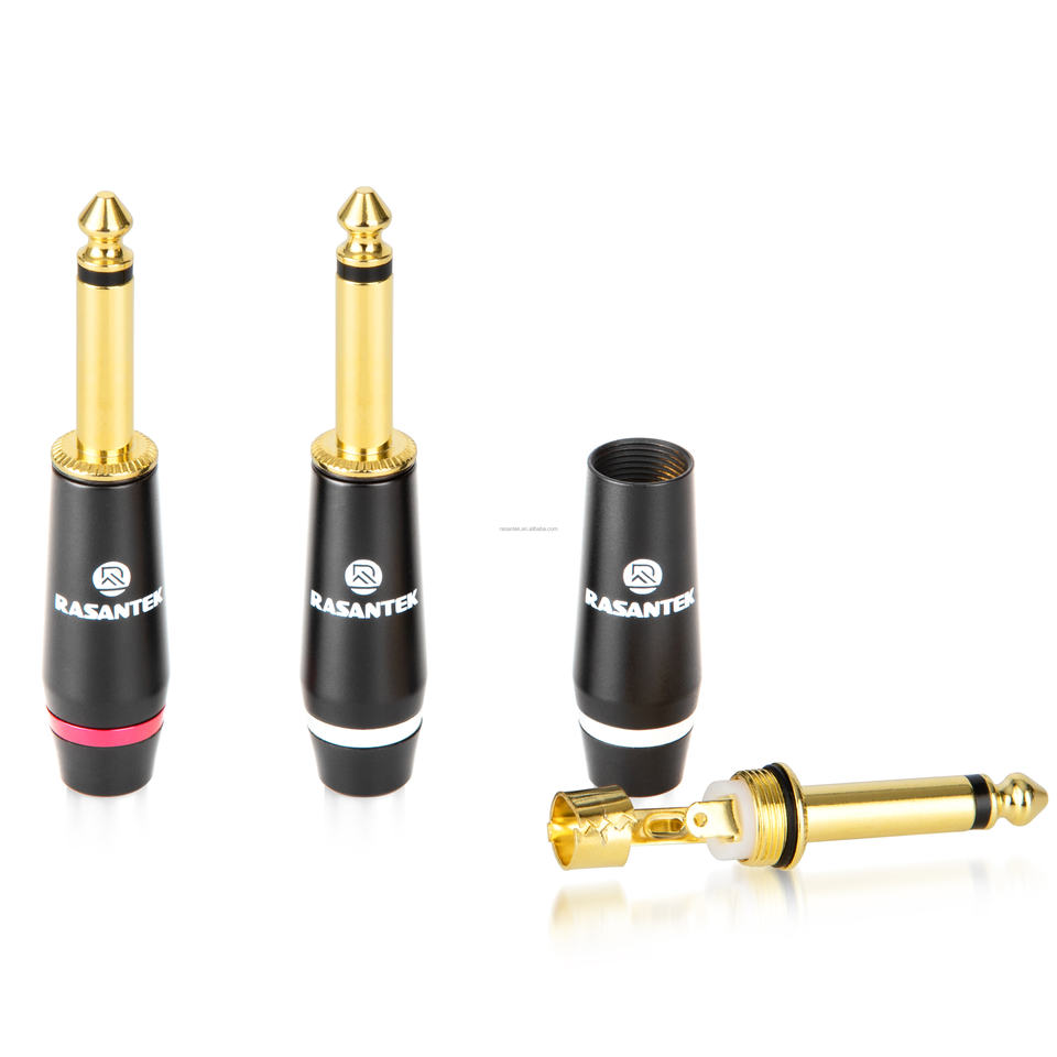 RASANTEK 2u "24K chapado en oro estéreo Mono Audio Jack 6,35mm auriculares enchufe Jack adaptador Audio Banana Plug