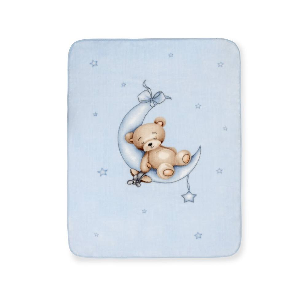 MANTA RASCHEL - MODELO OSO LUNA ESTRELLAS - Peluche Azul con Diseño de Dibujos Animados y Técnica No Tejida