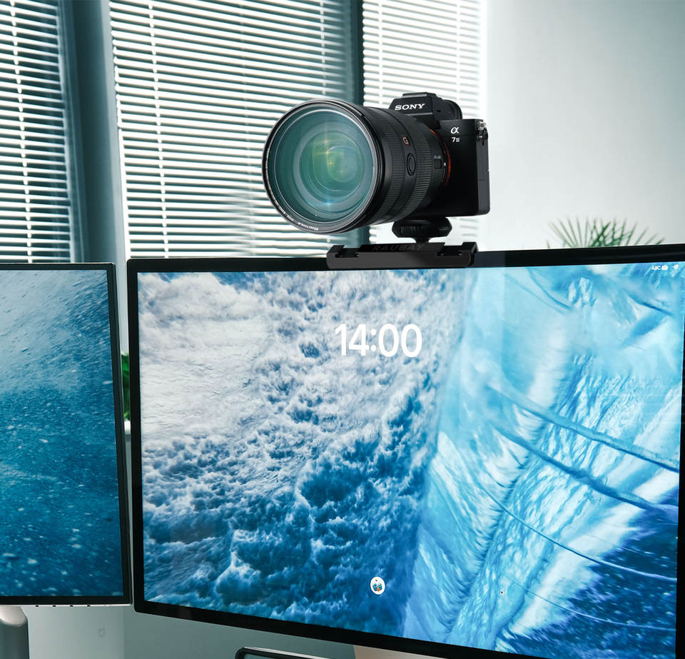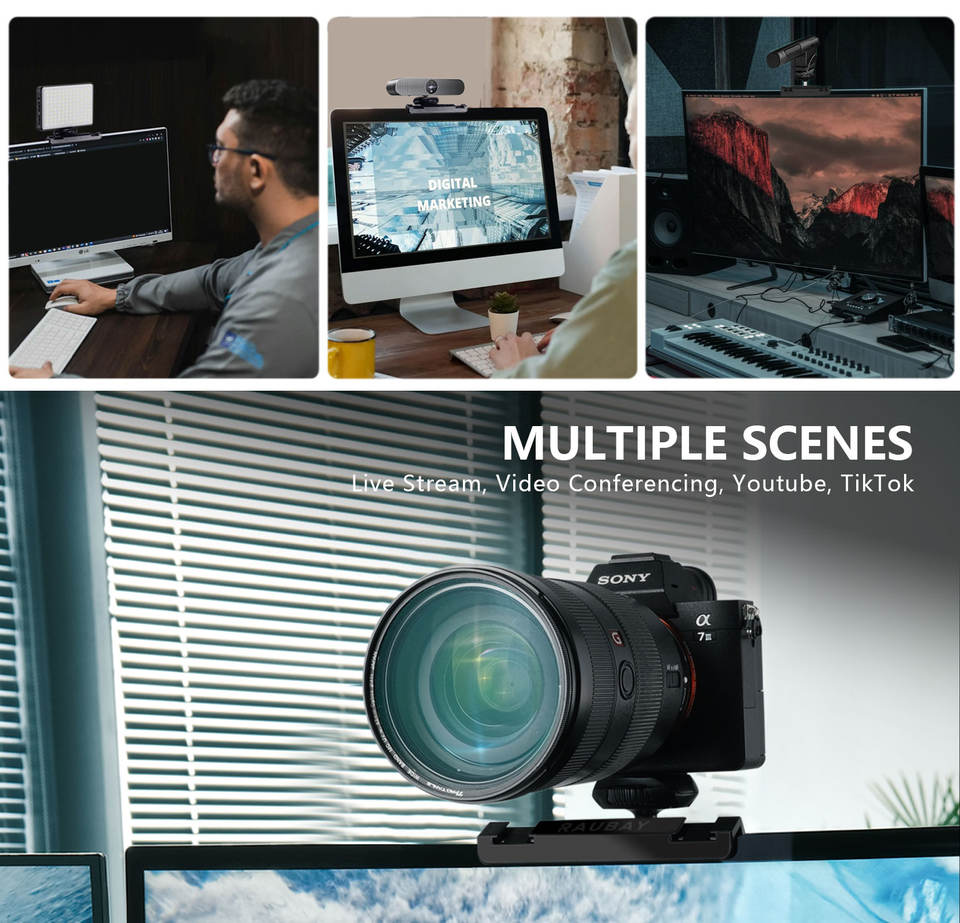 Soporte de Montaje para Cámara en la Parte Superior del Monitor RAUBAY, Soporte para Cámara Web Colgante con Tornillo de 1/4'', Apto para Monitores de Pantalla Plana