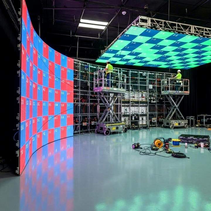 Pantalla LED curva RAYBO HD para alquiler interior P2.9, videowall LED con gabinete flexible, adecuada para estudios de fotografía en España