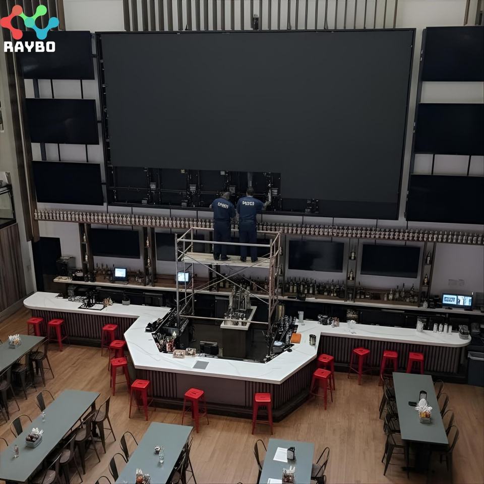 Pantalla LED para Interiores RAYBO Serie VisiGuard P1.56, Gabinete de 600x337.5mm para Bares de Estilo Americano y Decoraciones con Temática Deportiva