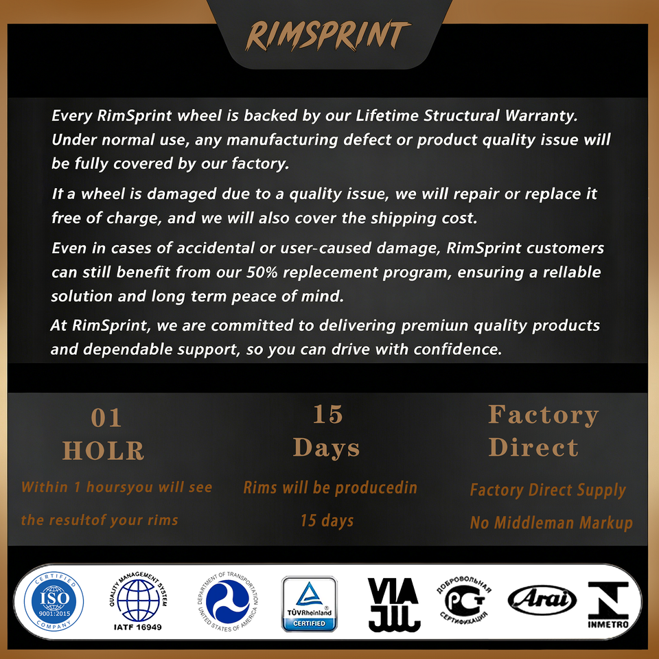 ISO9001 / IATF16949 / TUV / VIA / JWL / DOT/ECE