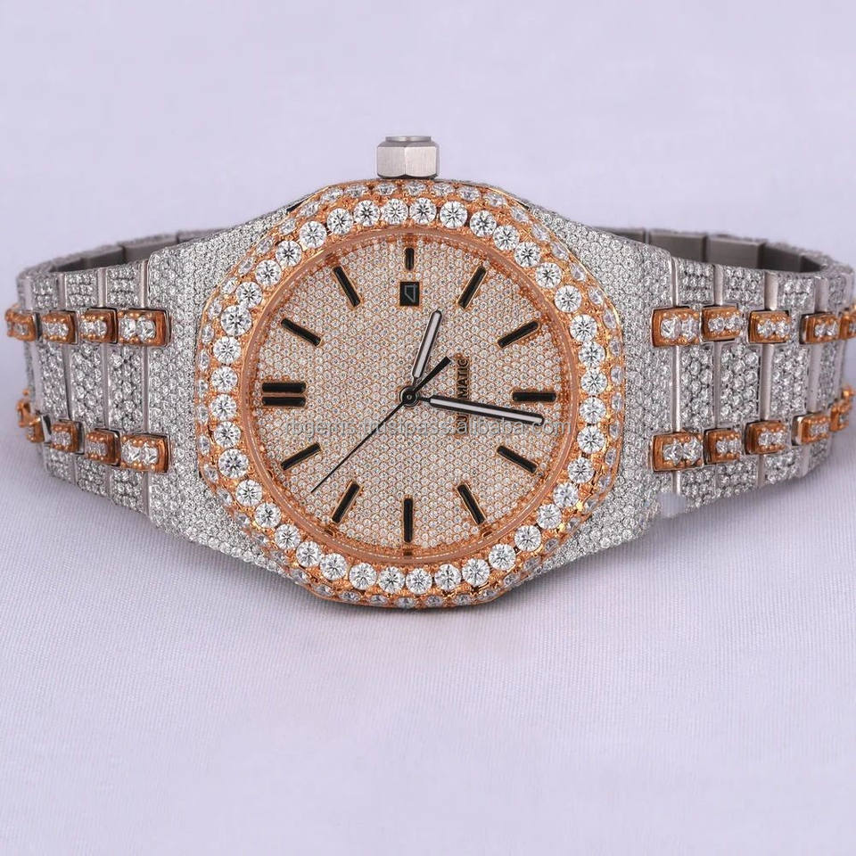 RB Gems Hip Hop IGI Certificado Nuevo Lujo Acero Inoxidable Solar Mecánico Cristal Dial VVS Moissanite Reloj Automático para Hombres