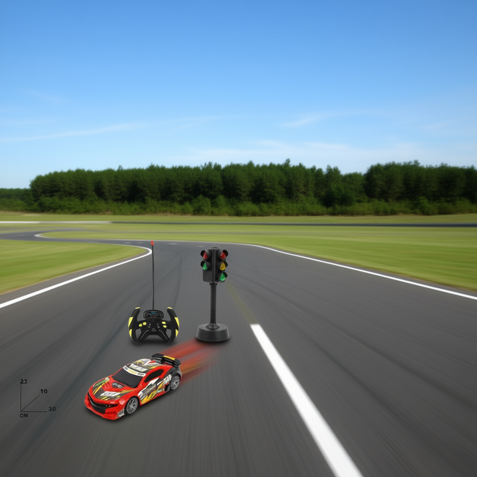 Auto de Carreras RC a Escala 1:24 con Control Remoto, Volante y Juego de Semáforos