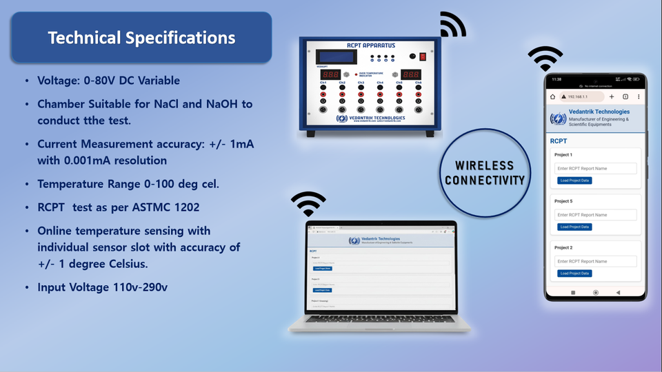 Aplicación:Prueba concreta, Pruebas de laboratorio, Pruebas de laboratorio, Clasificación de Durabilidad del Concreto, Clasificación de Permeabilidad de Mezcla de Concreto, Evaluación de Durabilidad a Largo Plazo, Verificación de Idoneidad para Exposición a Cloruros, Evaluación de la Durabilidad del Material de Concreto, Prueba de Durabilidad del Concreto en Laboratorio, Proyectos de Construcción, Verificación del Diseño de Mezcla de Concreto