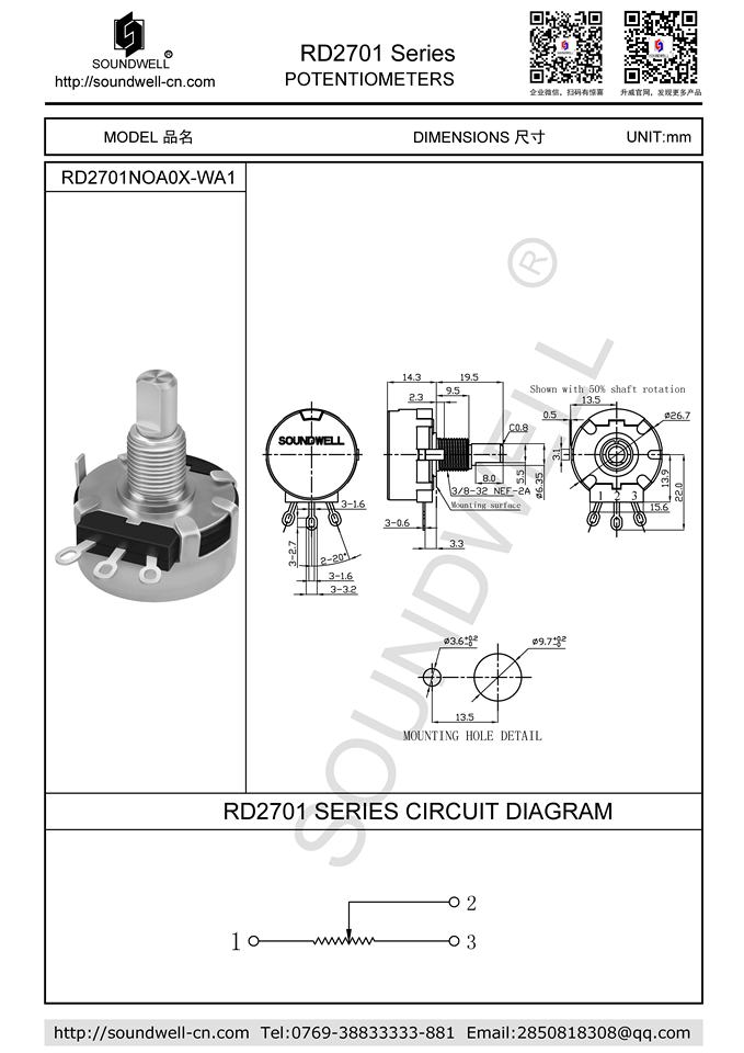 Potenciómetro de Alta Potencia RD27, Hoja de Datos del Potenciómetro, Potenciómetro de 10k