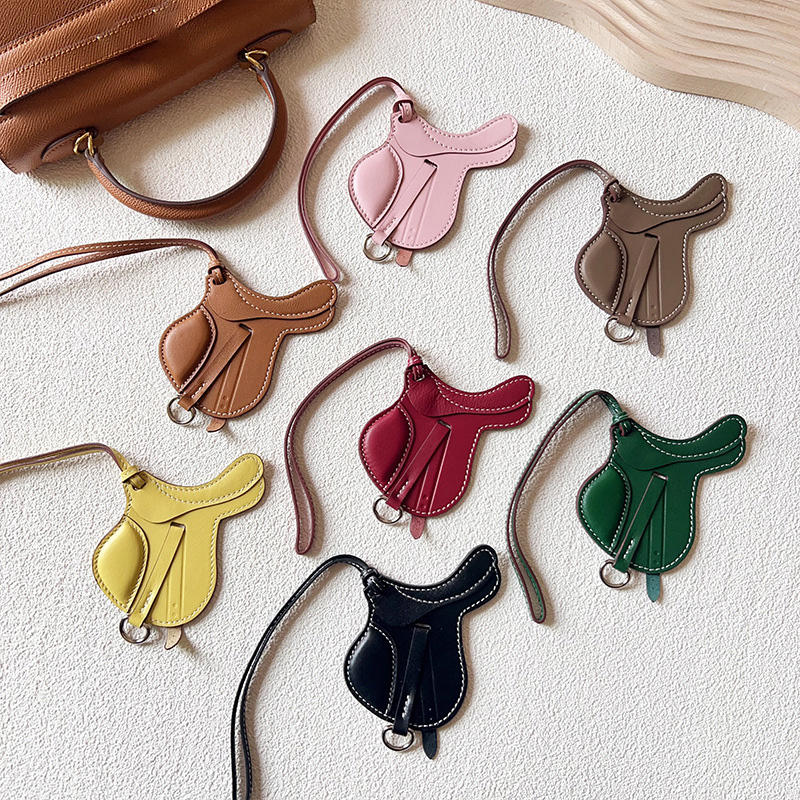 RE lujo silla diseñador coche llavero espejo retrovisor colgantes piel de oveja bolso de cuero genuino encanto para la decoración del bolso