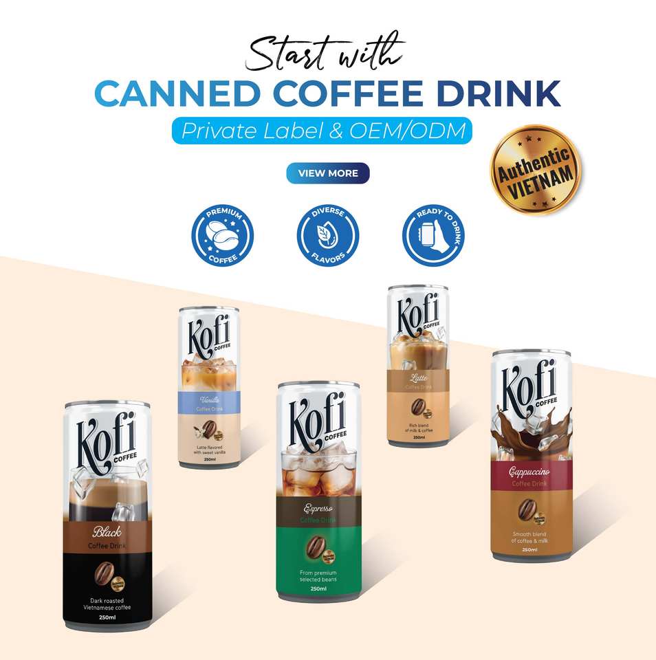 Bebida lista café marca KOFI bebida tropical fruta bebida OEM ODM 250ml lata de aluminio mejor servido frío HALAL muestra gratis