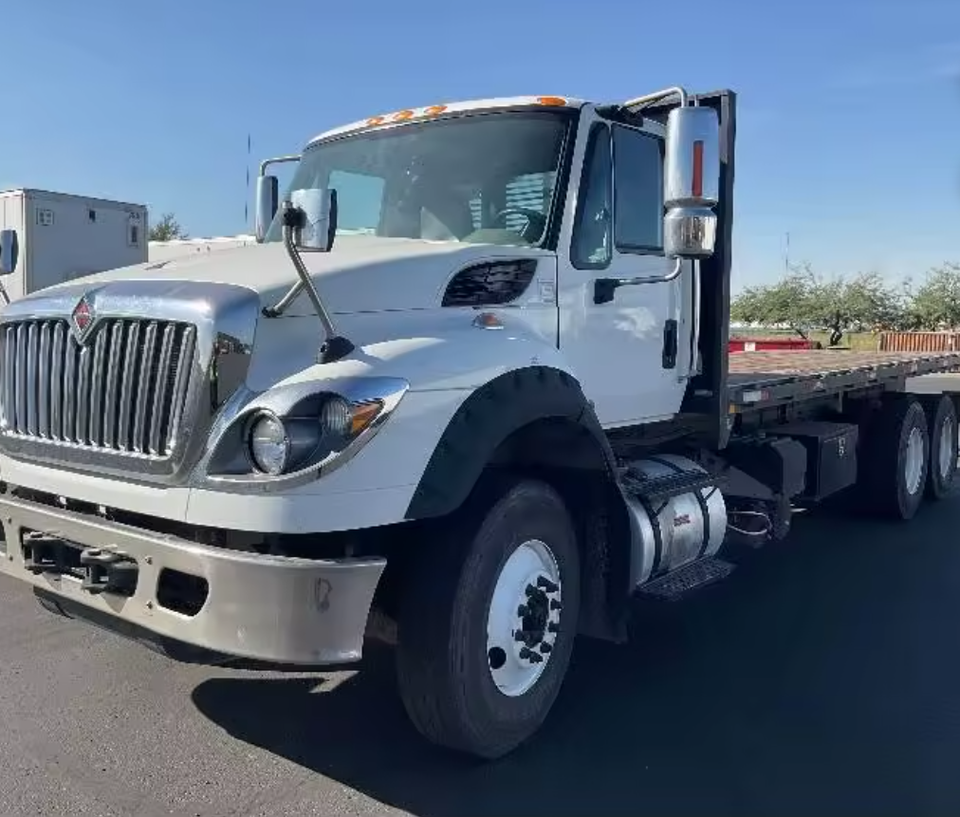 LISTO PARA ENVIAR, Camión de Plataforma Plana de 22 pies con Eje Tándem USADO de 2018 - 430HP, Transmisión Manual de 10 Velocidades, ENTREGA PUERTA A PUERTA EN TODO EL MUNDO