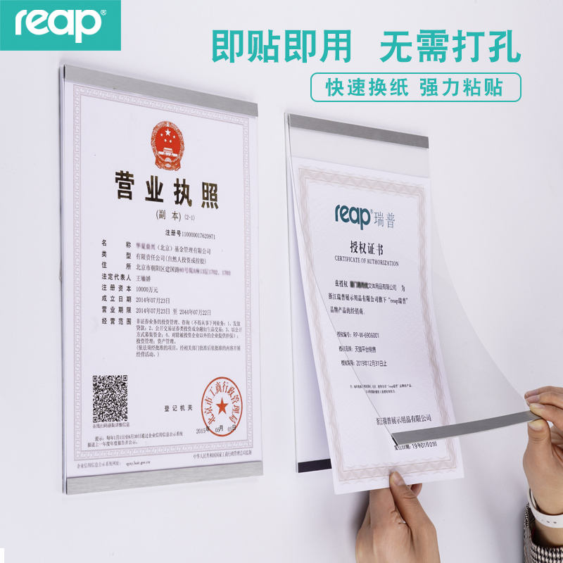 Portacarteles de Pared Acrílico REAP, Soporte Adhesivo para Documentos, para Certificados/Información/Anuncios