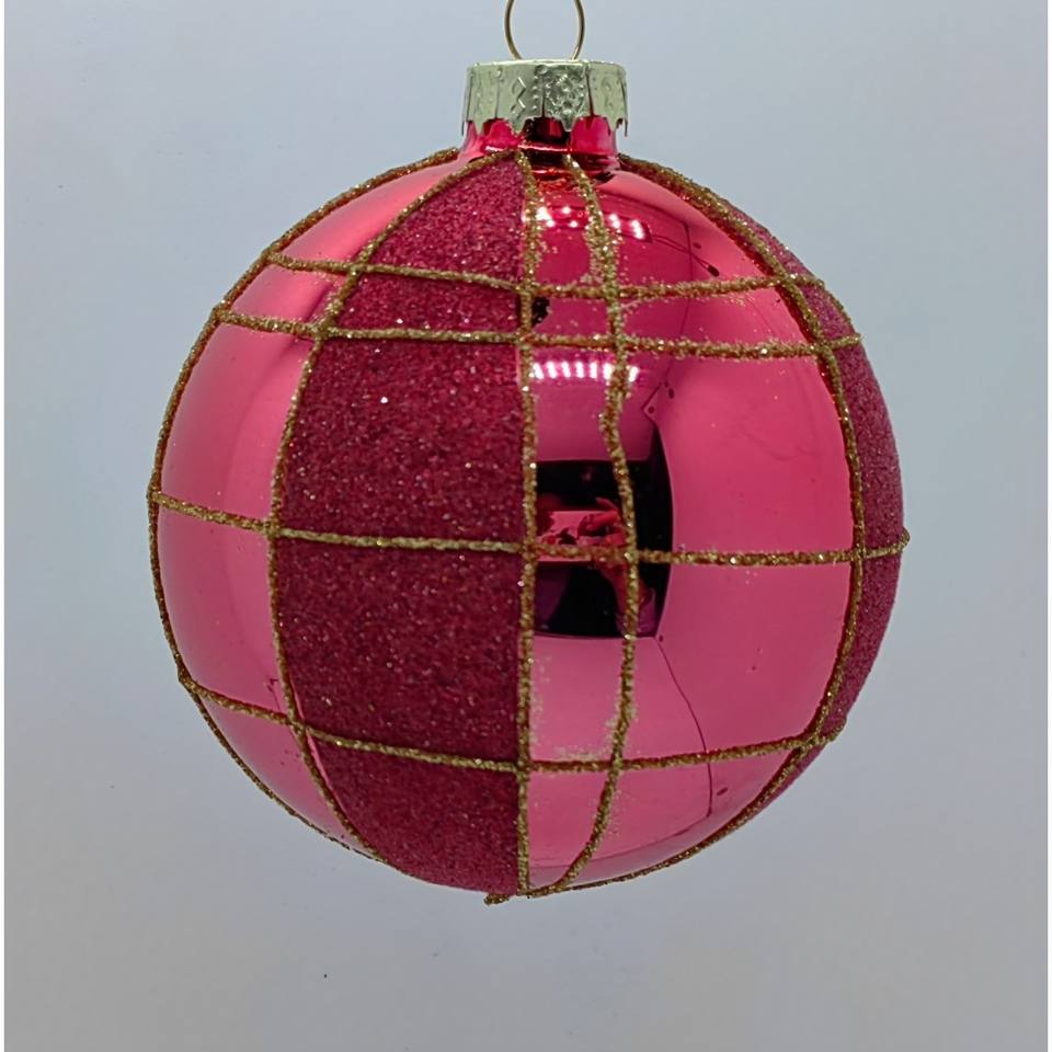 BOLA DE VIDRIO ROJA CON CUADRADOS, BRILLANTE Y MATE, DIAM. 8 cm