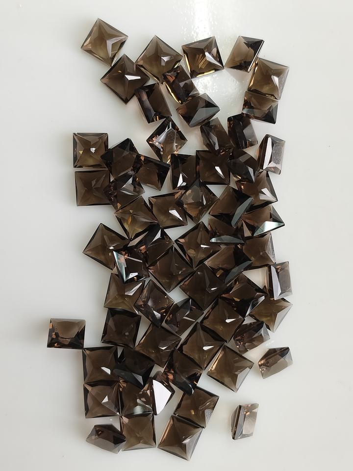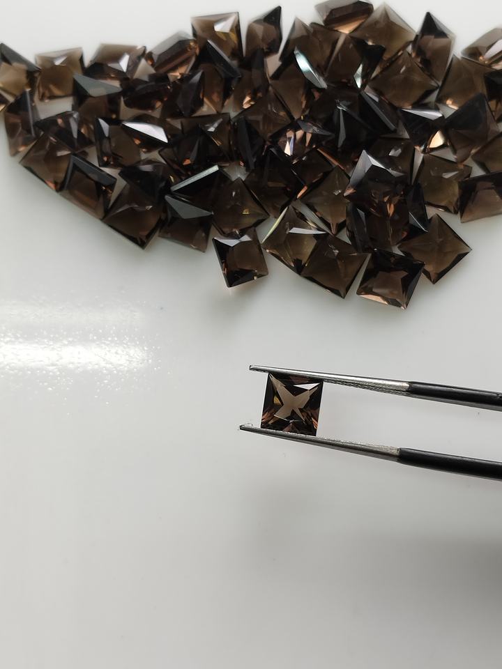 Piedra preciosa de cuarzo ahumado Natural de corte princesa cuadrada de 7mm exclusiva de MONTAÑA ROJA para la fabricación de joyas y collares