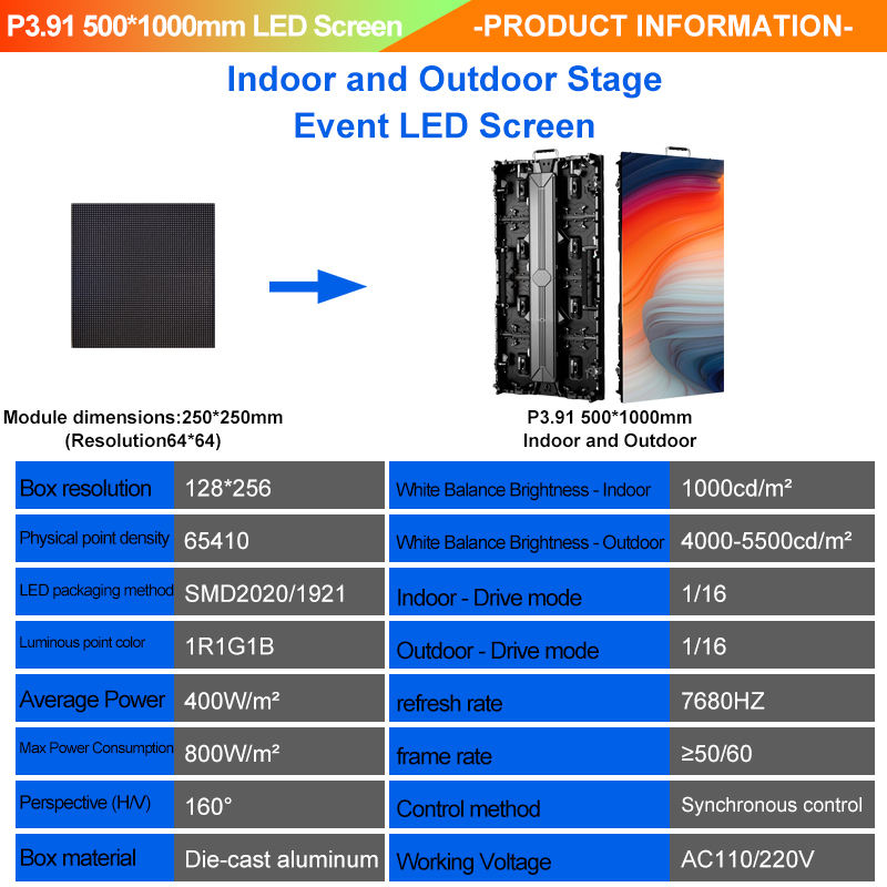 Nombre del producto:LED P3.91 Exterior IP65 500*1000 mm