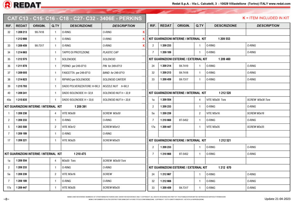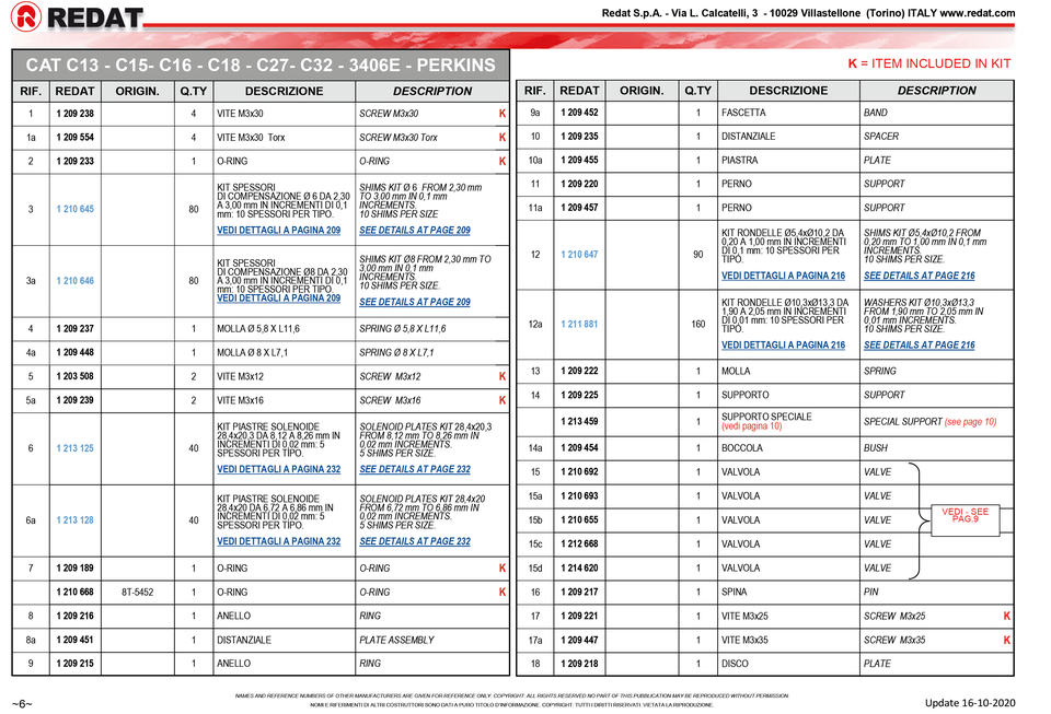 Adecuado para la aplicación OEM:Para C13 C15 C16 C18 C27 C32 3406E Perkins