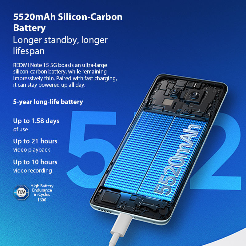 REDMI Note 15 5G CPU Snapdragon ® Plataforma móvil de 6.ª generación con pantalla AMOLED de 6.77 pulgadas, batería de 5520 mAh (típica) y Xiaomi HyperOS 2