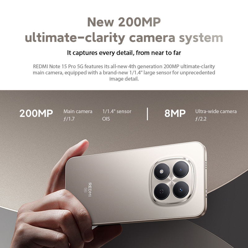 REDMI Note 15 Pro 5G CPU MediaTek Dimensity 7400-Ultra Pantalla AMOLED de 6.83" Batería de 6580mAh (típica) Xiaomi HyperOS 2