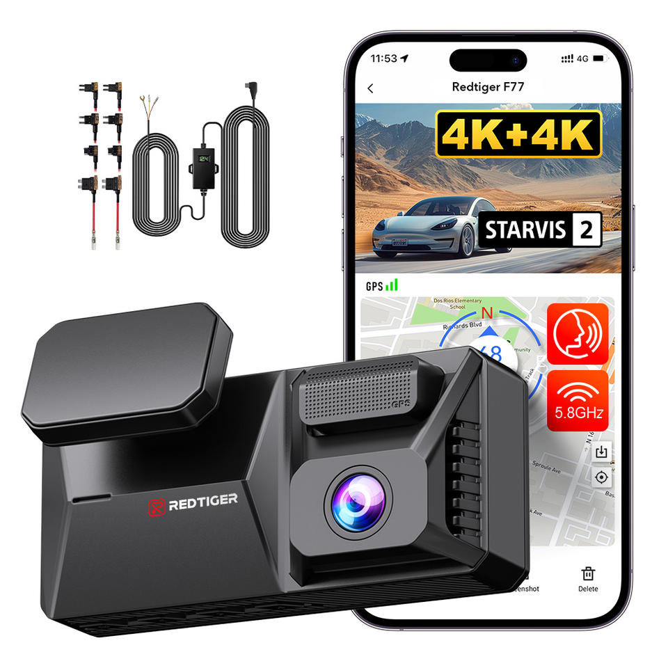 Distribuidor REDTIGER F77 Cámara de Auto Delantera y Trasera con Visión Nocturna Dual 4K Sensor Starvis 2 IMX678 Caja Negra para Coche con WIFI GPS