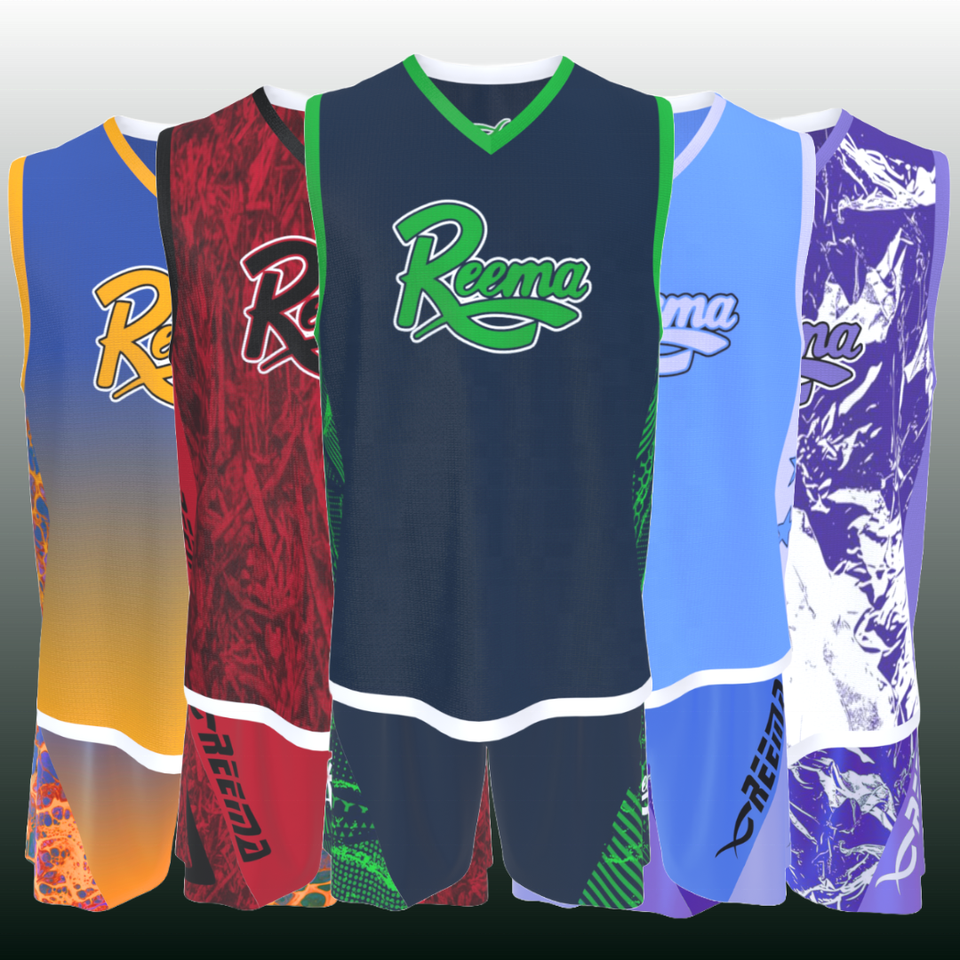 REEMA ofrece uniformes de baloncesto de secado rápido personalizados al por mayor, camiseta de baloncesto por sublimación para hombres y ropa de baloncesto corta para mujeres