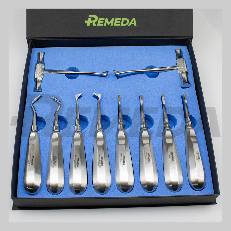 Juego de Elevadores Dentales REMEDA de 10 Piezas con Empaque Especial en Caja, Kit de Elevadores de Raíz, Equipos Dentales con Certificación CE