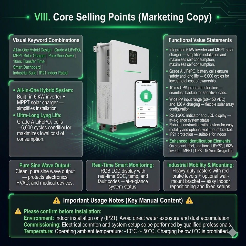 Cycle life:6,000+ >80%(25℃, 100% DOD)