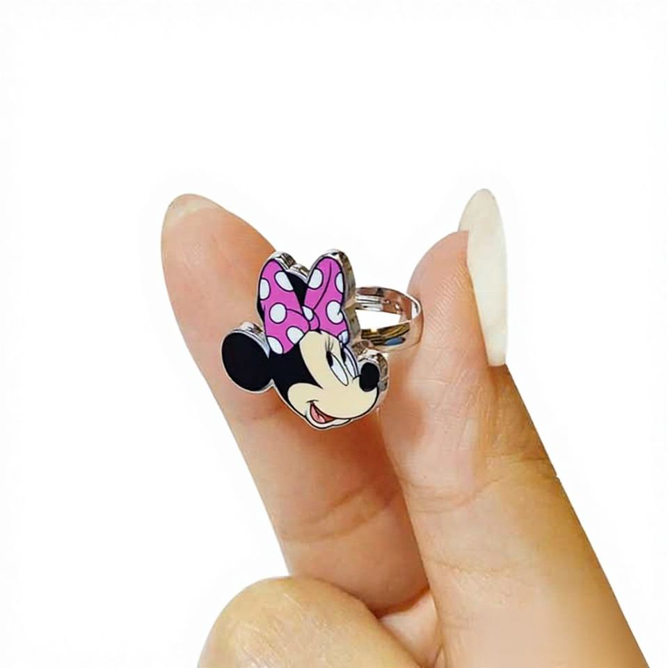 MUESTRA RETAIL H.E.R. Accesorios de Joyería, Juego de 4 Anillos Ajustables de Minnie para Niñas, Lindos Anillos para Niñas Pequeñas con Dijes Metálicos, Hechos en China