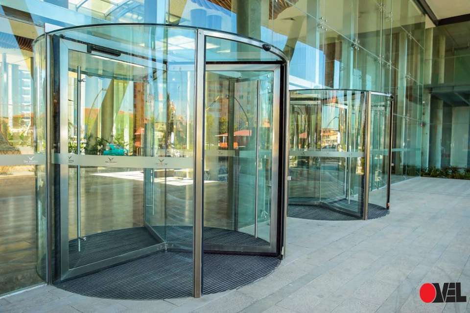 Puertas Giratorias de Vidrio y Aleación de Aluminio con Apertura Lateral Eléctrica MOTTO para Centros Comerciales con Diseño Moderno