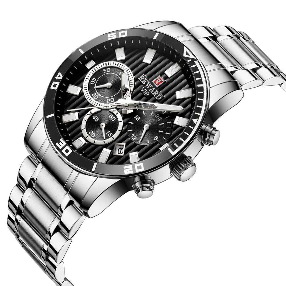 Característica:Fecha automática, Cronógrafo, Calendario completo, Día/fecha, Resistente al agua, Impermeable, Luminoso, Manos luminosas, Tres pequeños aguja