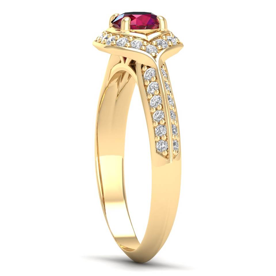 Anillo REYES de Diseño Clásico, Oro Sólido de 14K, Corte Redondo, Gema de Rubí de 0.5 Quilates con Halo de Moissanita, Certificado GRA, Joyería Fina