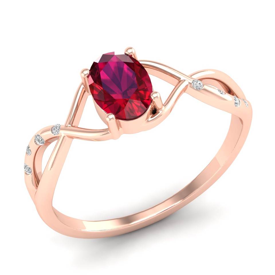 Venta Directa de Fábrica REYES, Anillo de Oro Sólido de 14K con Rubí de Corte Ovalado de 0.75 Quilates, Joyería para Mujer, Anillos de Moissanita de Corte Redondo