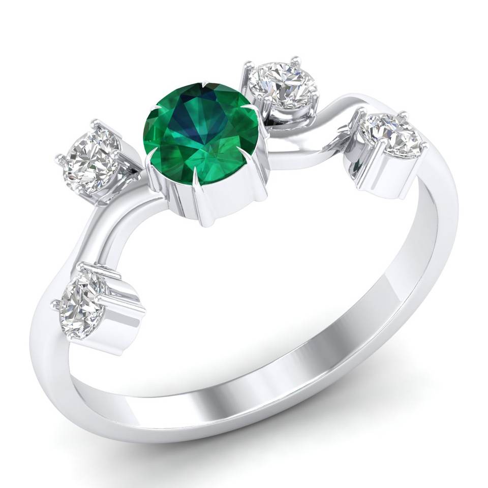 Anillos de Oro Sólido de 14K Hechos a Mano por REYES con Gema Esmeralda de Corte Brillante Redondo de 0.5 Quilates y Moissanita para Mujer, Joyería al por Mayor