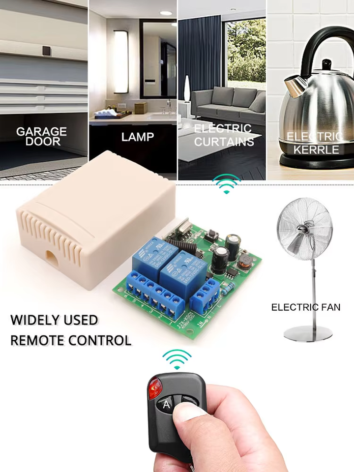 Aplicación2:Garaje, Luz, Cortinas automatizadas, Ventilador, Puerta, Portón, LED, Lámparas, Motor