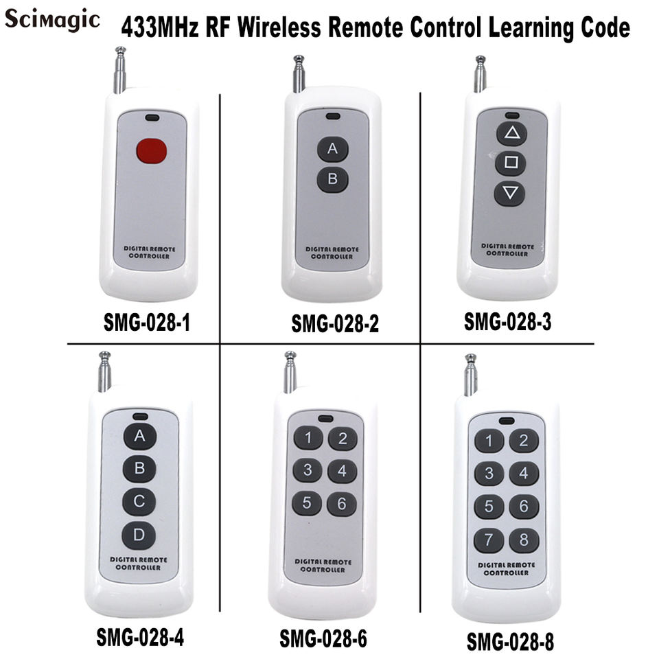Control Remoto RF 433MHz EV1527 con Código de Aprendizaje, 1/2/3/4/6/8 Botones, Universal para Puertas de Garaje, Portones y Sistemas de Alarma