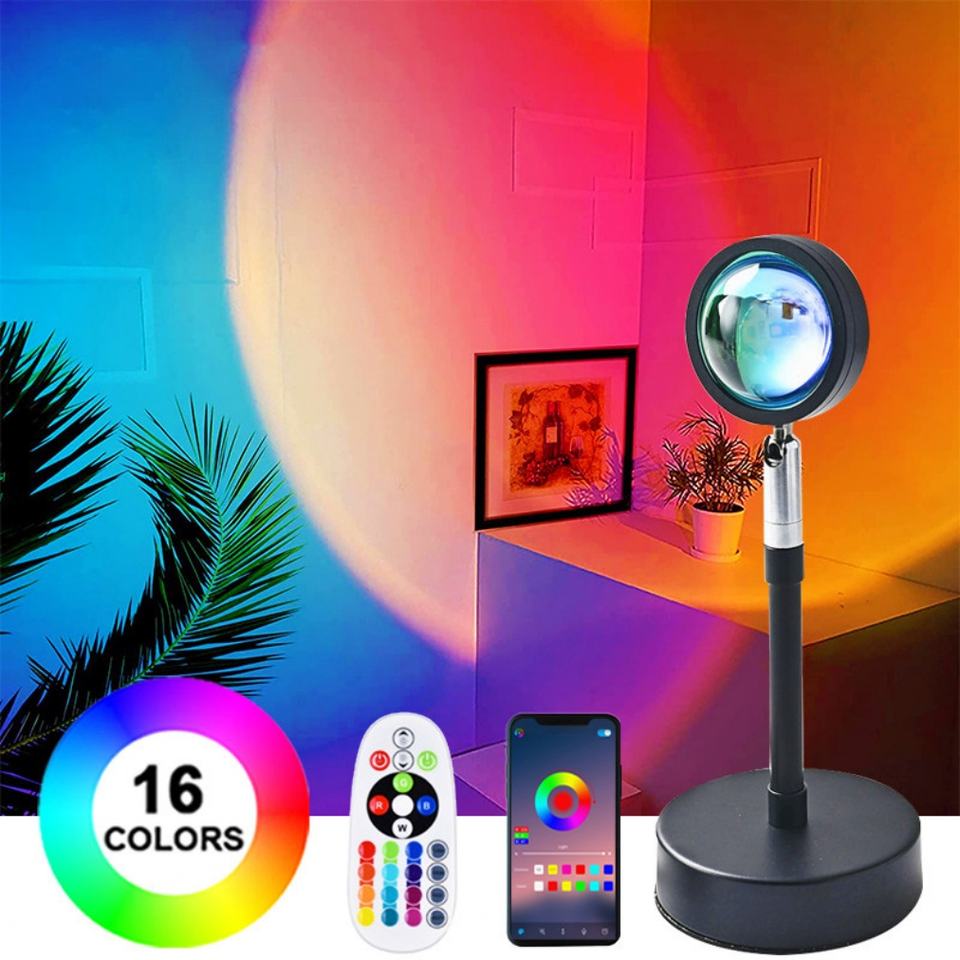 Lámpara Proyector LED RGB de 16 Colores con Control Remoto por Aplicación, Proyección de Atmósfera, Luz de Atardecer para Decoración de Fondo en Hogar, Dormitorio, Tienda
