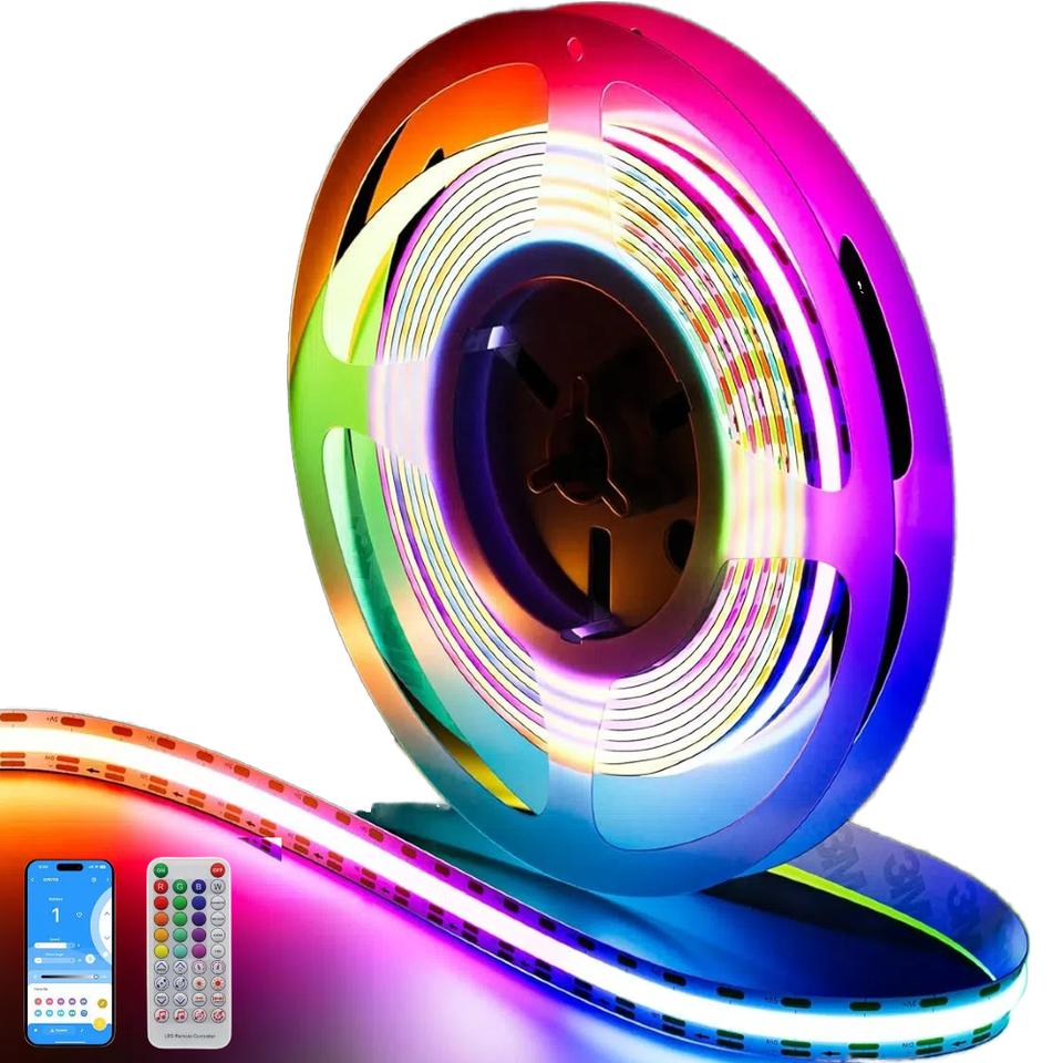 Tira de LED RGB CCT COB, 320 Unidades, Direccionable, Efecto de Agua Fluyendo, Cortable, Luces LED con Control Remoto por Aplicación, Negro WS2811 Epistar DC24V