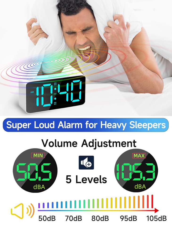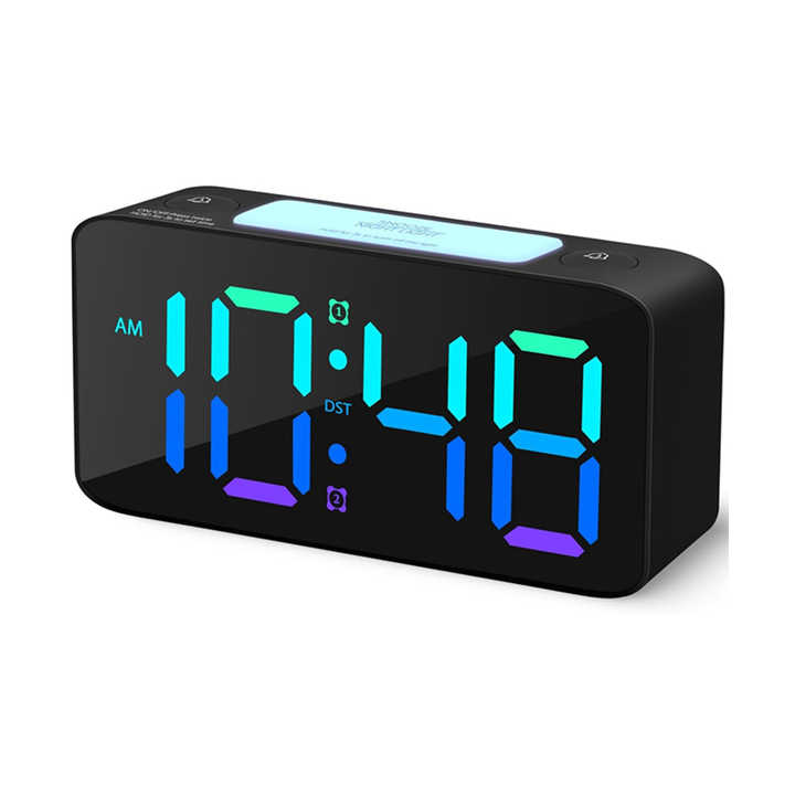 Espejo Digital RGB con Pantalla LED Grande, Luz Nocturna, Reloj Despertador Doble con Cargador USB para Niños