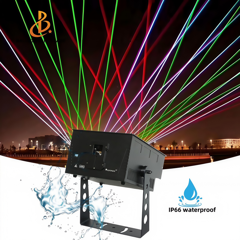 Láser impermeable RGB Firefly, utilizado para luces de parque dinámicas y energéticas.