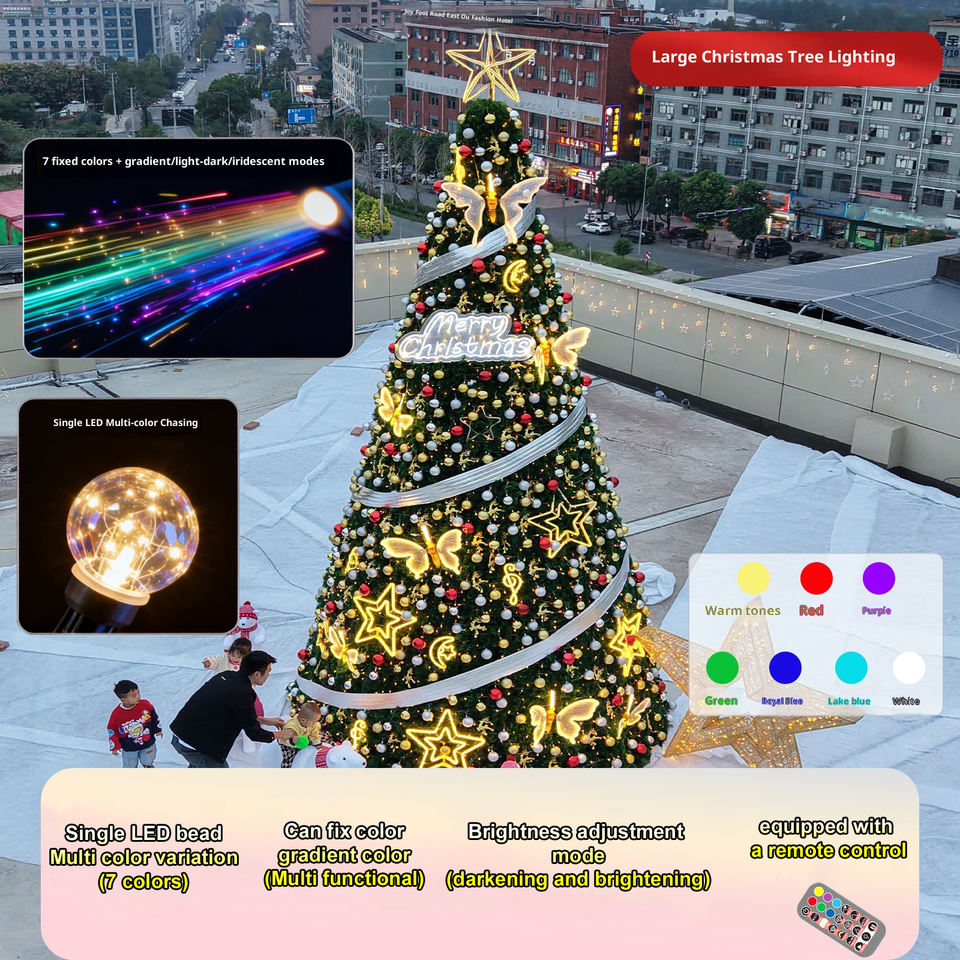 Árbol de Navidad con Luces LED RGB y Decoraciones, Diseño Impermeable y Base con Control Remoto para Decoración Exterior